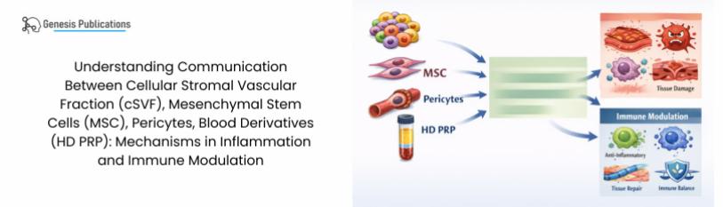 The intersection of cellular therapies—especially cSVF, MSCs, and pericytes—with blood derivatives such as HD-PRP is central to regenerative medicine and immune modulation. cSVF, harvested from adipose tissue, contains a diverse array of stem/stromal cells (notably ASCs), pericytes, endothelial cells, and immune cell subsets, all contributing to tissue repair and homeostasis [1]. Compared to bone marrow-derived MSCs, adipose-derived MSCs exhibit superior immunomodulatory properties [2]. Pericytes, which envelop capillaries and microvessels, are pivotal for vascular stability and immune regulation [3]. The integration of HD-PRP—rich in growth factors and bioactive proteins—amplifies these effects and has been validated in musculoskeletal and pulmonary applications, as well as in aesthetic medicine [46]. This review provides an updated synthesis of the cellular and molecular crosstalk that enhances inflammation control and regeneration.